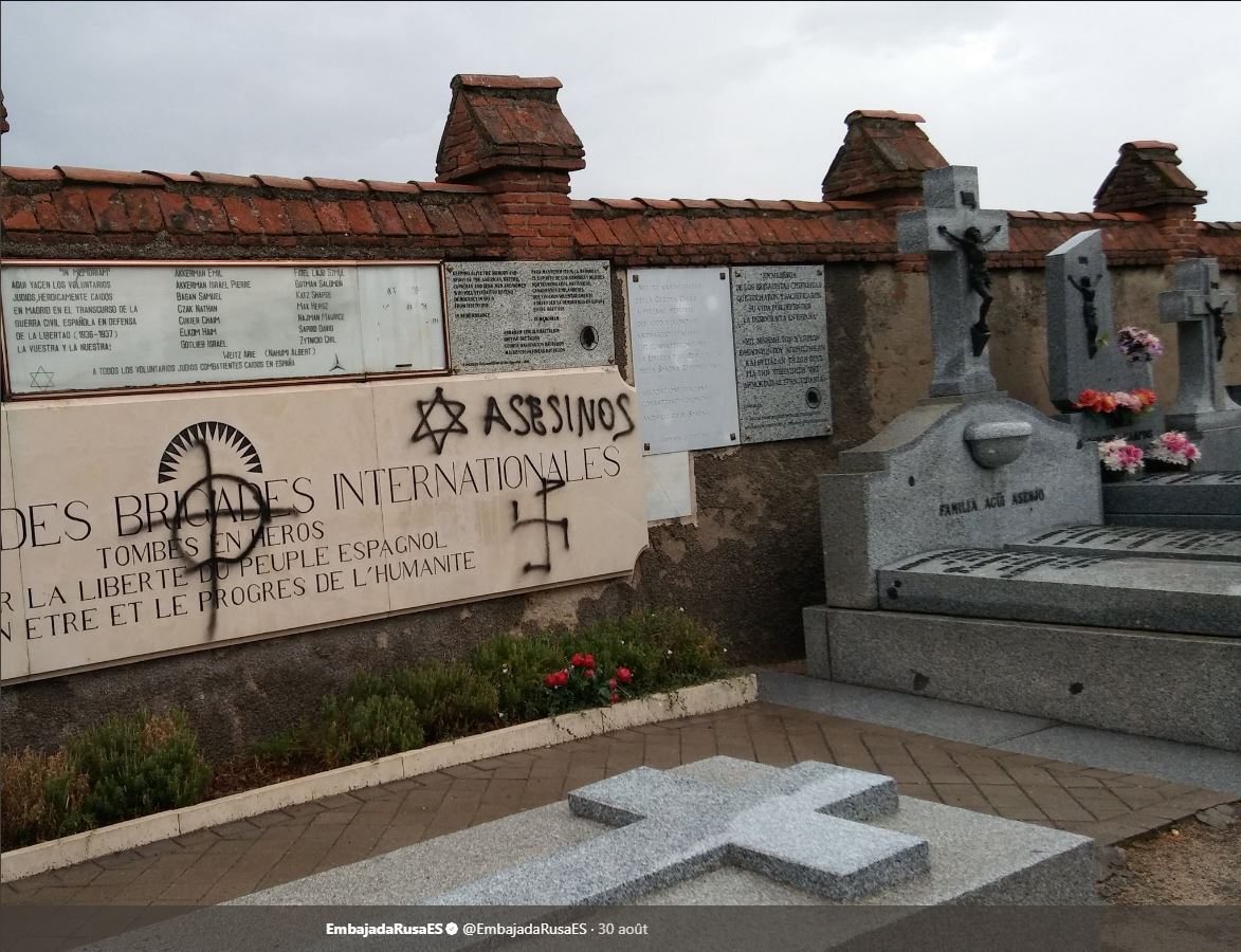Nous sommes profondément indignés par les profanations de tombes de brigadistes internationaux au cimetière de Fuencarral.